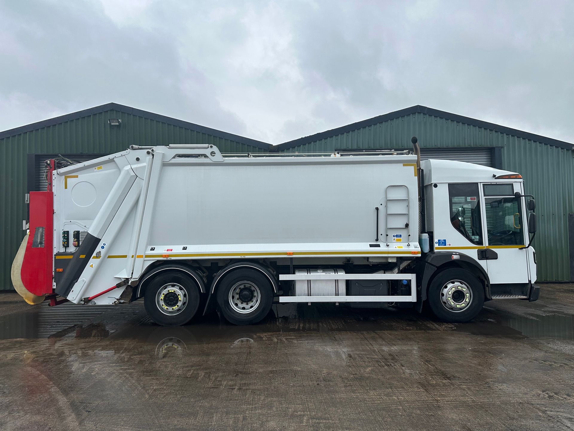LED REAR LIGHTING. DENNIS INTEGRATED AXLE WEIGHING SYSTEM. VDO DIGITAL TACHO. REAR VIEW CAMERA SYSTEM. INTEGRATED LED CAB ROOF BEACONS. 280 LITRE FUEL TANK. SIDE UNDER RUN PROTECTION RAILS. BRUSH & SHOVEL HOLDER. BODY SIDE ACCESS LADDER WITH GRAB HANDLE. UNDER BODY STORAGE BOX. TEAL HANDWASH UNIT. LEACHETE HOPPER SUMP.
