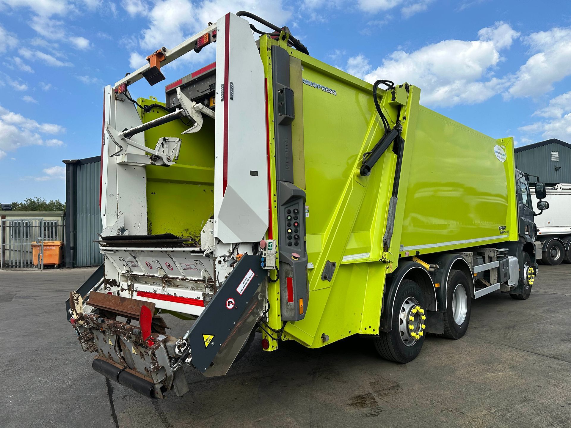 SINGLE COMPARTMENT REFUSE COLLECTION BODY. FAUN ZOLLER VARIOPRESS II 521 V19. FITTED WITH A ZOLLER OMEGA 359 TRADE BIN LIFT. HANDLES BOTH TRADE & DOMESTIC BIN TYPES. 500KG SWL. FULL WIDTH FOLDING RAVE/HOPPER PLATE. WEIGH PREPARED FOR BIN WEIGHING. ALTERNATIVE BIN LIFT OPTIONS AVAILABLE UPON REQUEST.