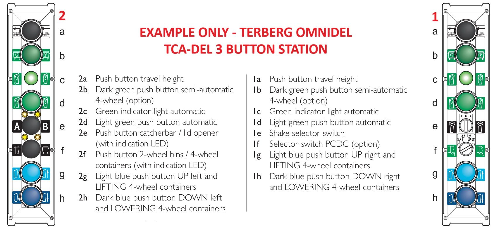 TERBERG OMNIDEL TCA-DEL 3 BUTTON STATIONS. GENUINE OEM PARTS. VARIOUS OPTIONS AVAILABLE TO SUIT MODEL TYPES AND VARIATIONS. SUPPLIED TO BEST MATCH YOUR EQUIPMENT.